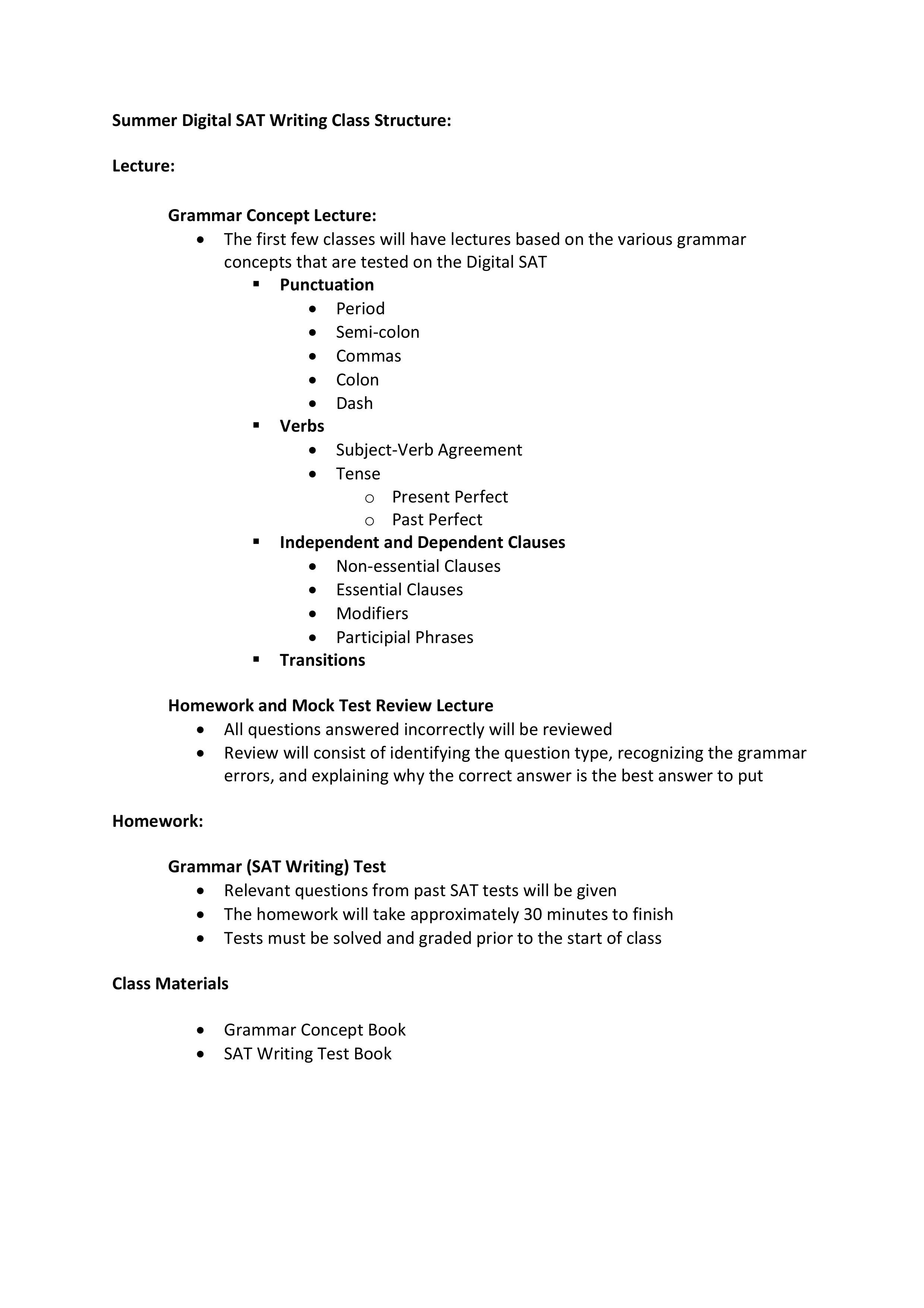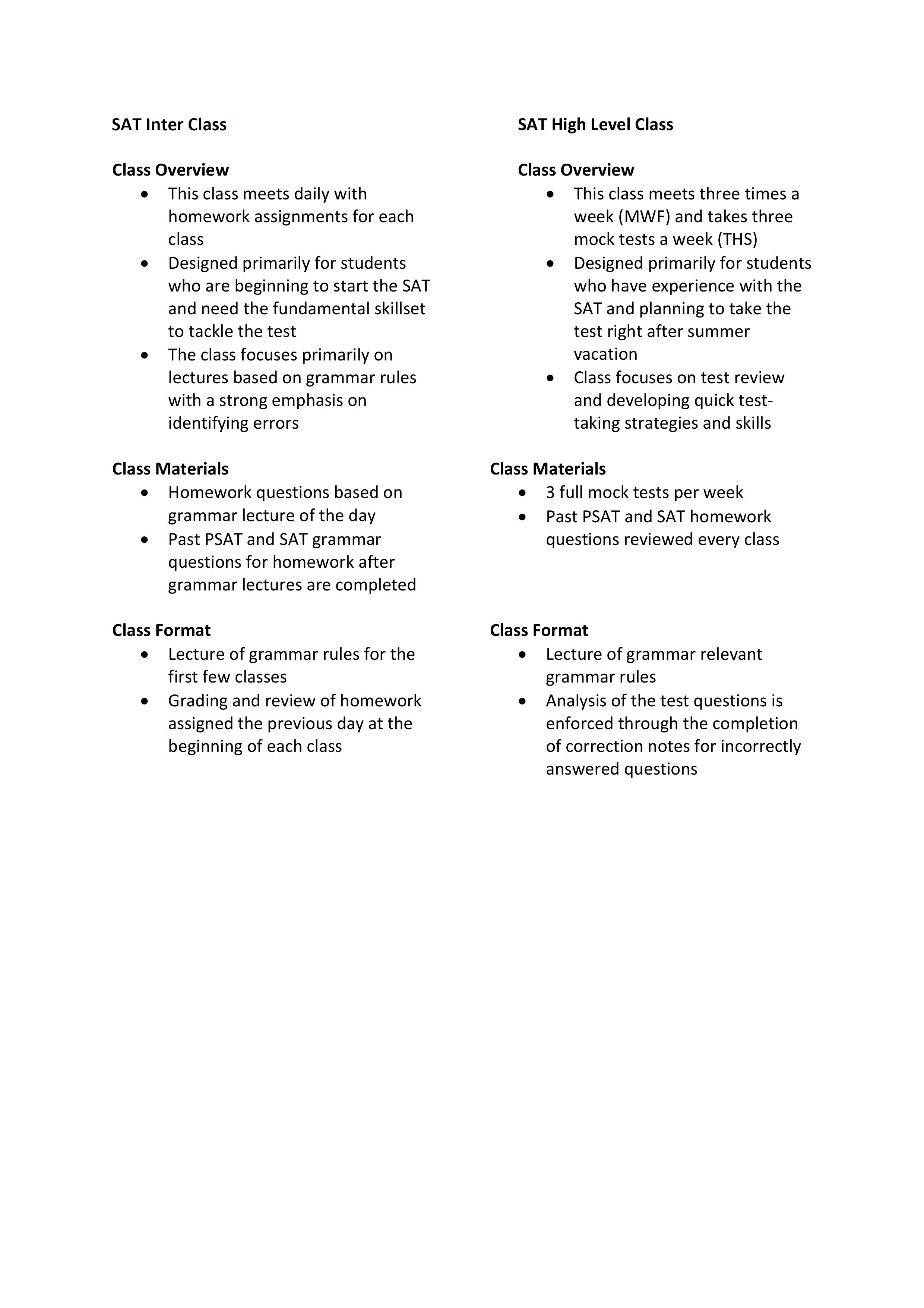 SAT Intensive Class