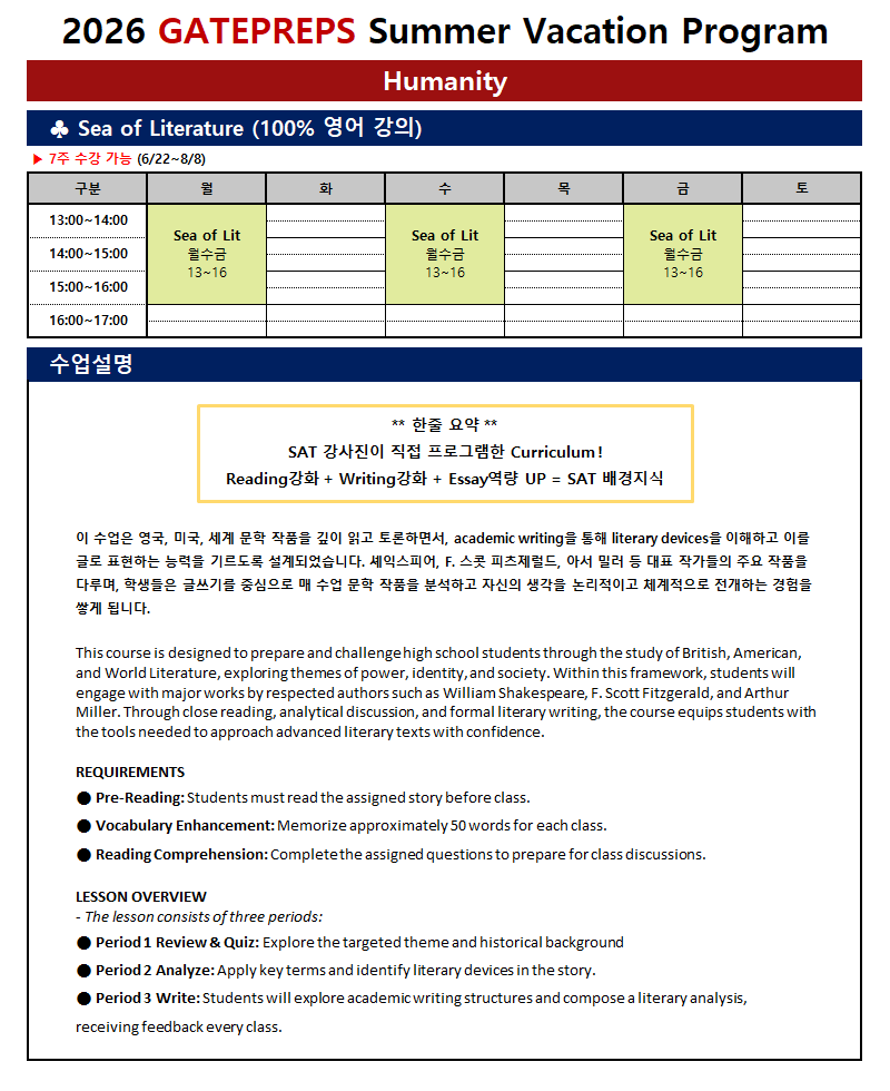 ▶전) 국제학교 교사 출신 강사의 필독서 중심의 수업으로 GPA 향상