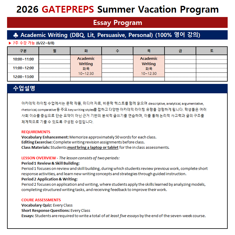 ▶학교 과제 및 Essay 실력 향상