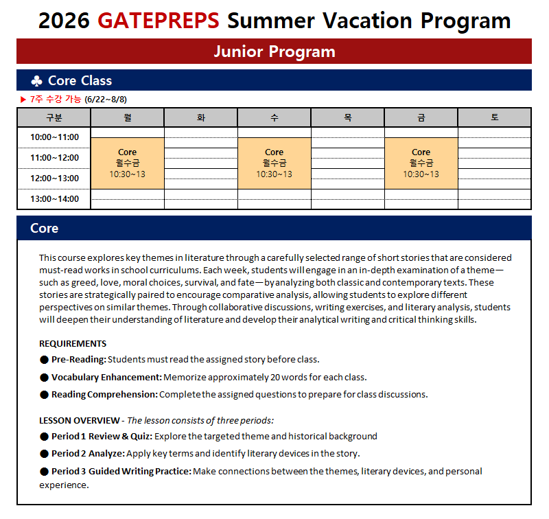 2026 여름특강 Junior 스케줄