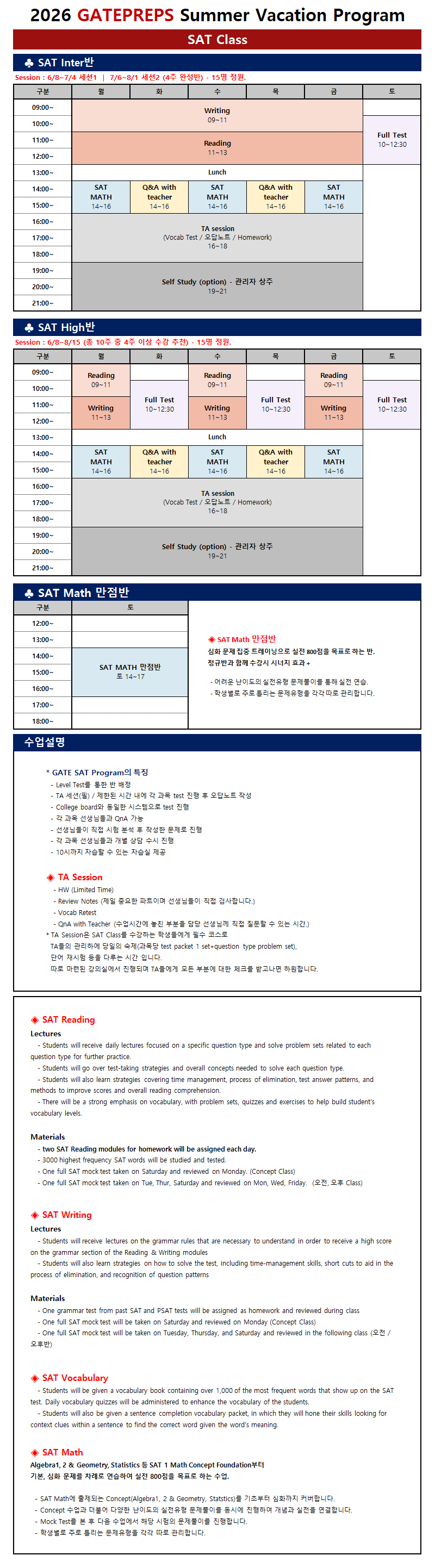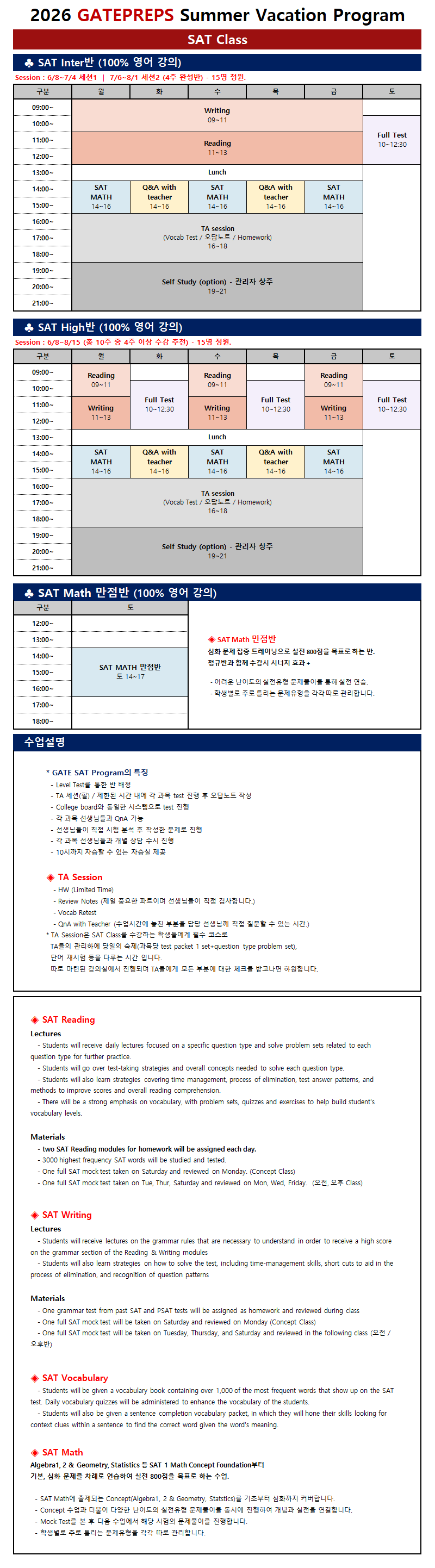 2026 여름특강 SAT 스케줄