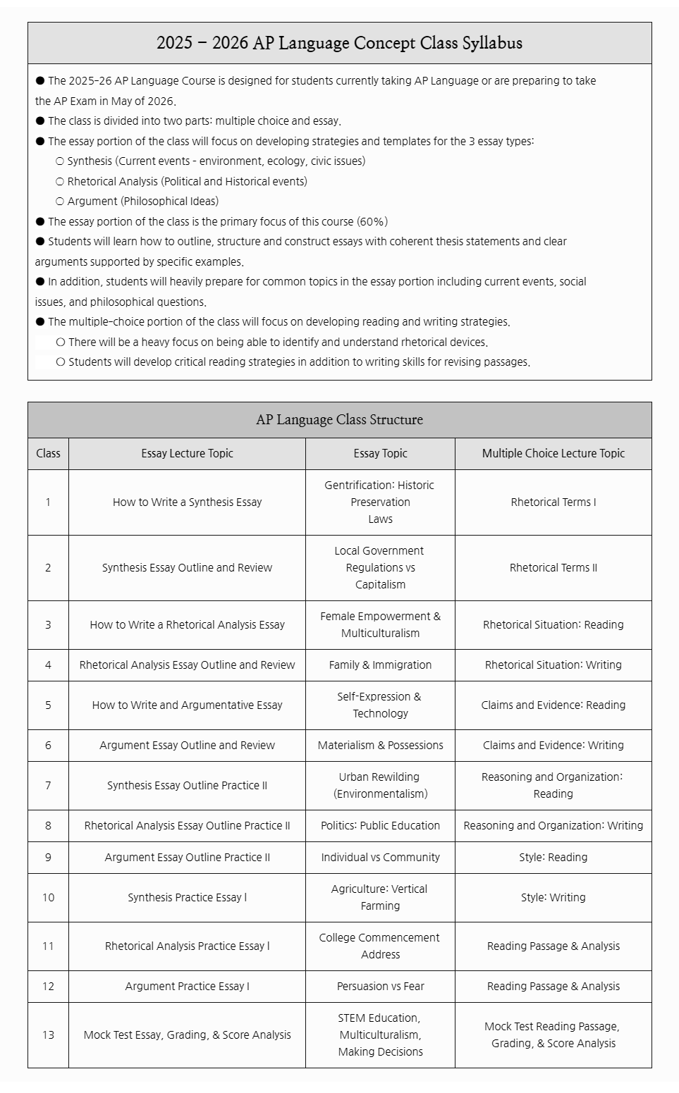 HOME| 2025-2026 겨울 AP Language 특강 |