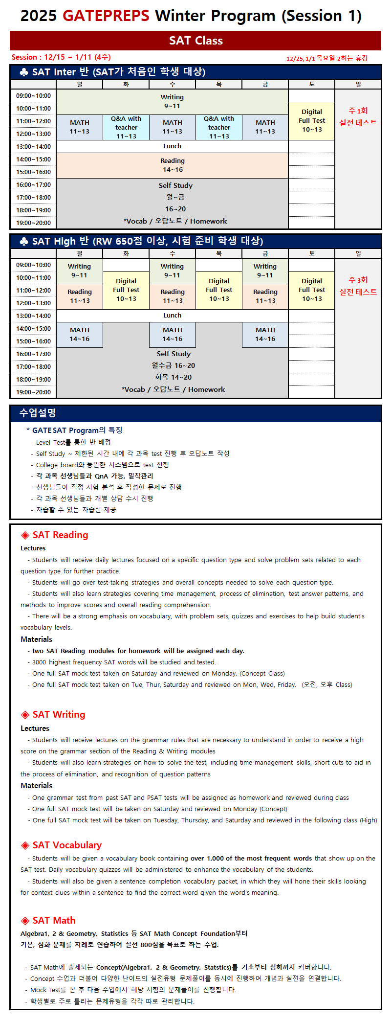 HOME| 2025 겨울특강 SAT 스케줄 |
